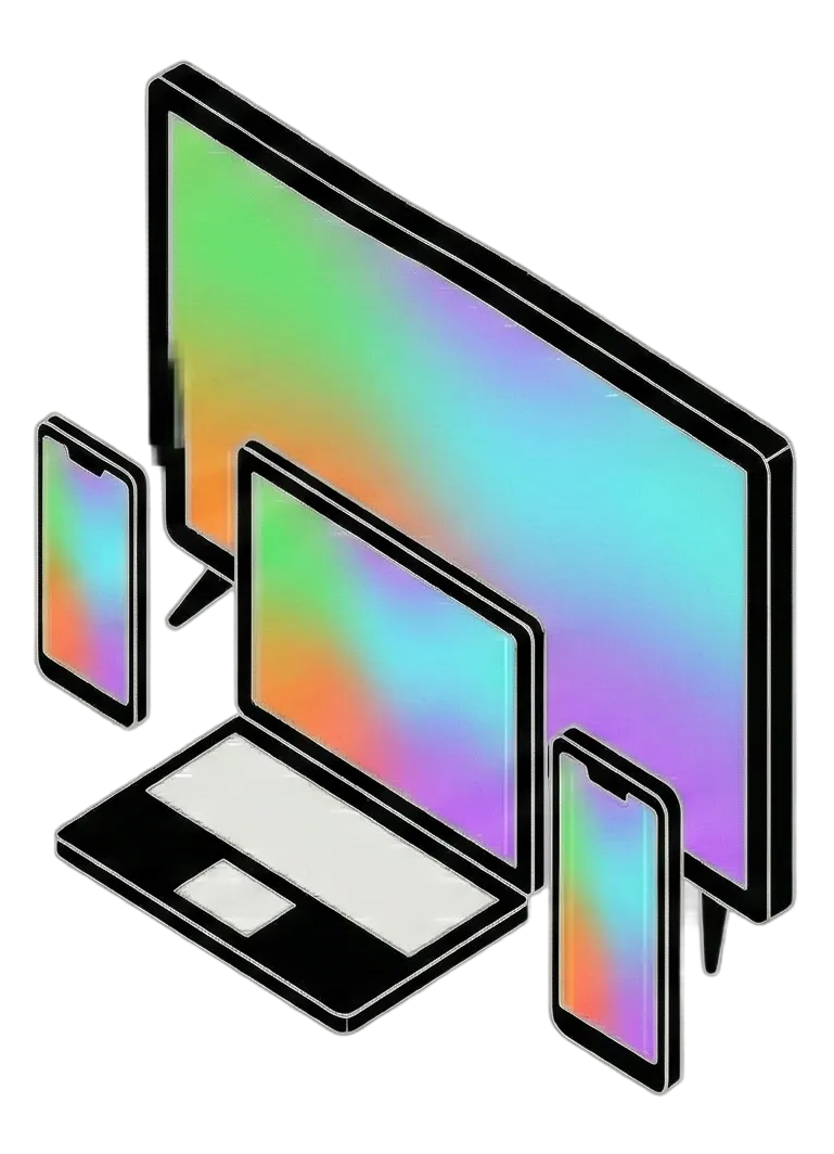 Criativos responsivos para TVs, smartphones e múltiplas resoluções.